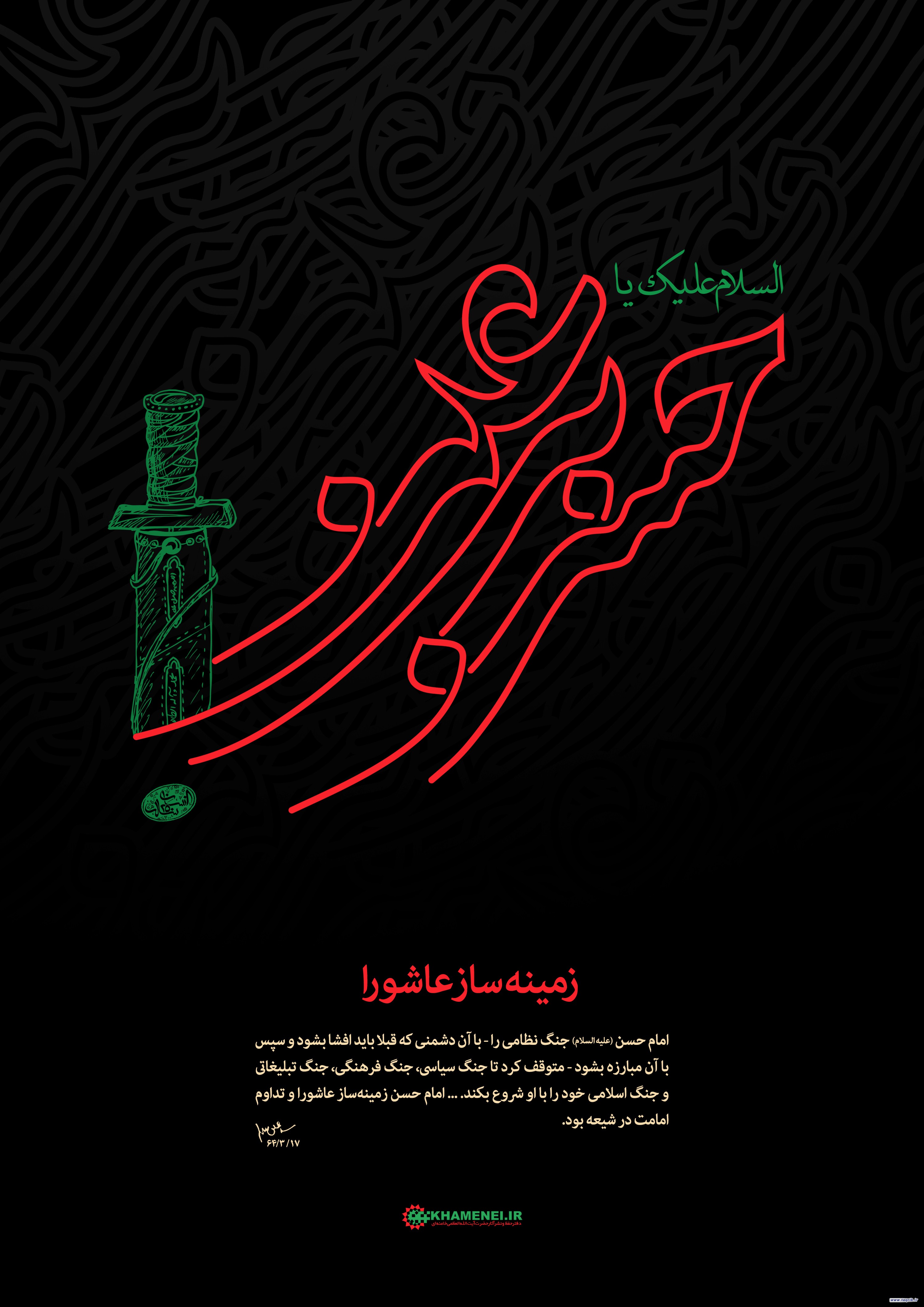 حضرت آیتالله خامنهای: امام حسن جنگ نظامی را - با آن دشمنی که قبلا باید افشا بشود و سپس با آن مبارزه بشود - متوقف کرد تا جنگ سیاسی، جنگ فرهنگی، جنگ تبلیغاتی و جنگ اسلامی خود را با او شروع بکند. ... امام حسن زمینهساز عاشورا و تداوم امامت در شیعه بود. ۱۳۶۴/۰۳/۱۷