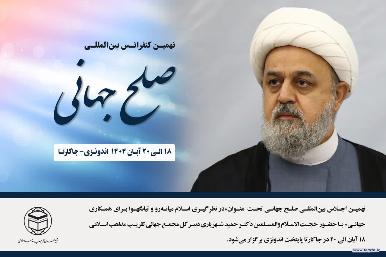 به گزارش روابط عمومی مجمع جهانی تقریب مذاهب اسلامی،نهمین اجلاس جهانی «صلح» از ۱۸ تا ۲۰ آبان‌ماه سال جاری در جاکارتا، پایتخت اندونزی، برگزار خواهد شد.