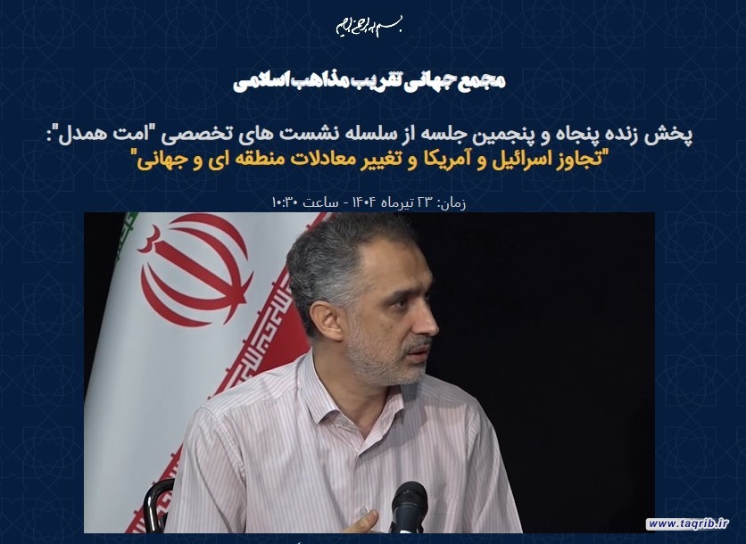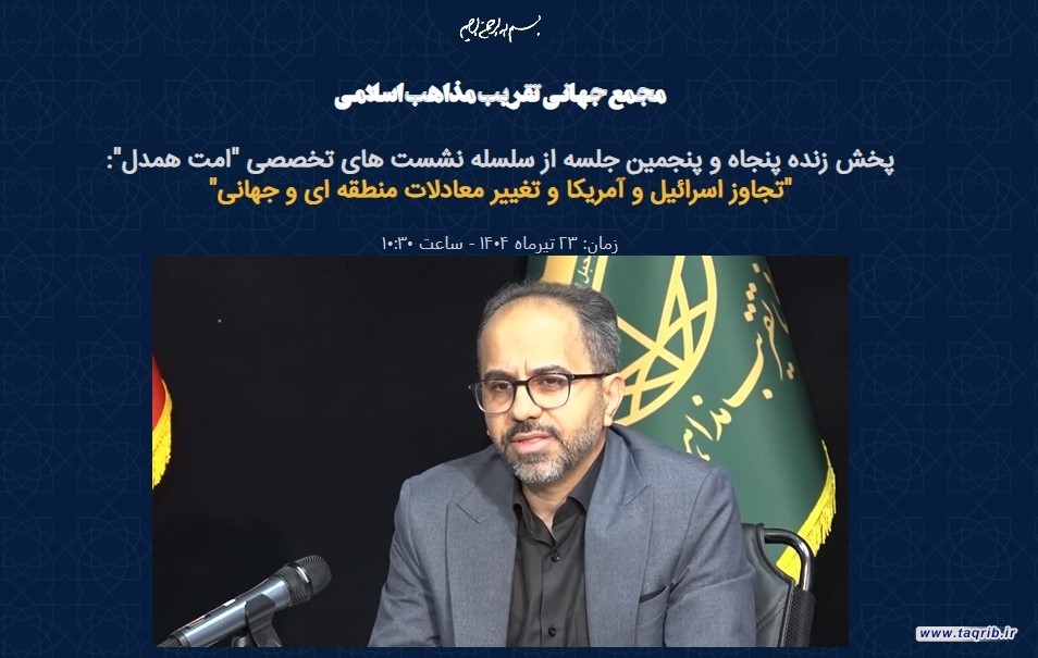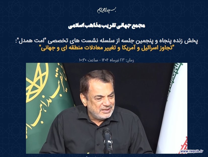 به گزارش روابط عمومی مجمع جهانی تقریب مذاهب اسلامی، پنجاه و پنجمین جلسه از سلسله نشست های تخصصی "امت همدل" با عنوان تجاوز اسرائیل و آمریکا و تغییر معادلات منطقه ای و جهانی و با حضور دکتر حسین رویوران استاد دانشگاه، کارشناس ارشد مسائل خاورمیانه، دکتر مهدی شکیبایی رئیس فرهنگسرای رسانه،کارشناس ارشد مسائل سیاسی و دکتر محمد شاهدی کارشناس ارشد مسائل سیاسی برگزار شد.
